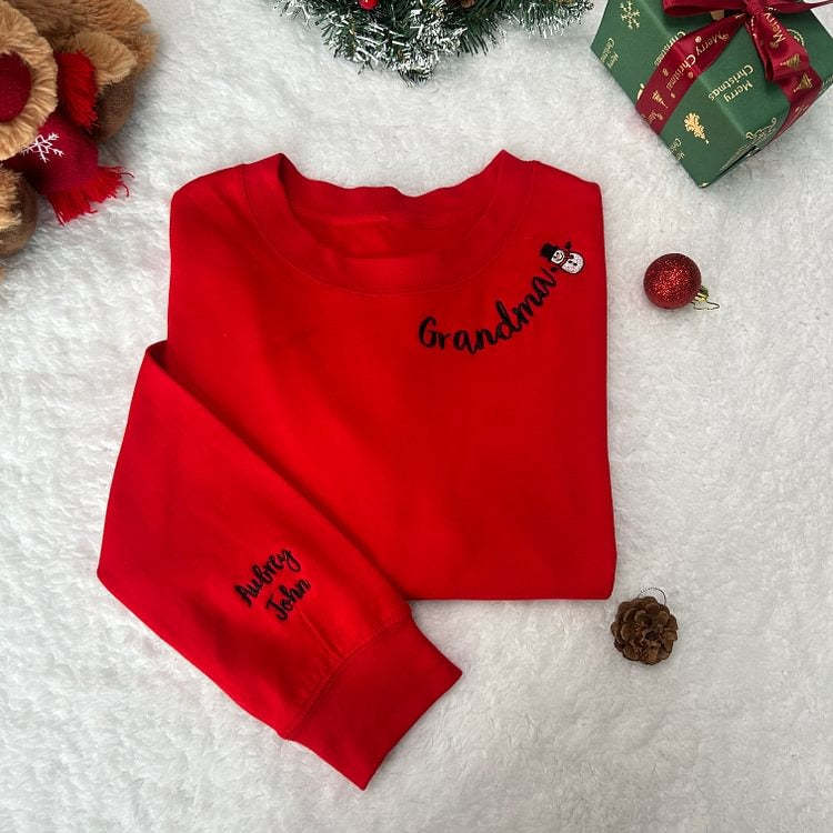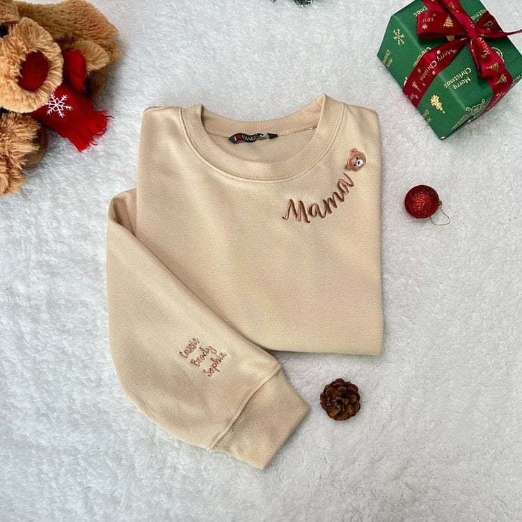 Custom Mama Christmas Embroidered Sweatshirt With Kids Names On Sleeve Personalized Gift For Moms HCMD0400