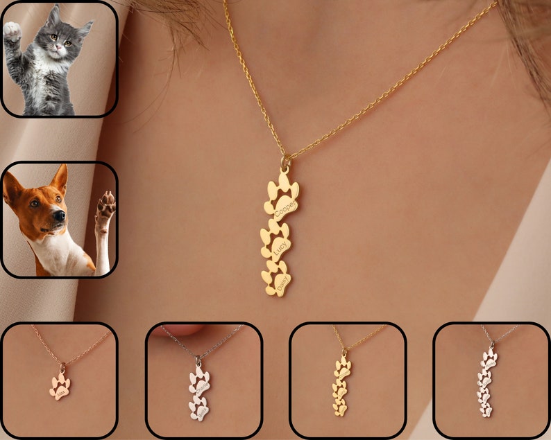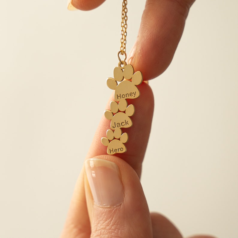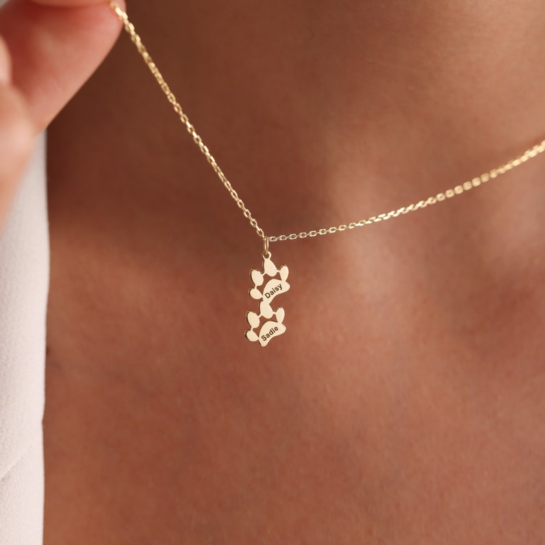 Personalized Pet Paw Print Name Necklace Cat Dog Paw Necklace For Pet Moms